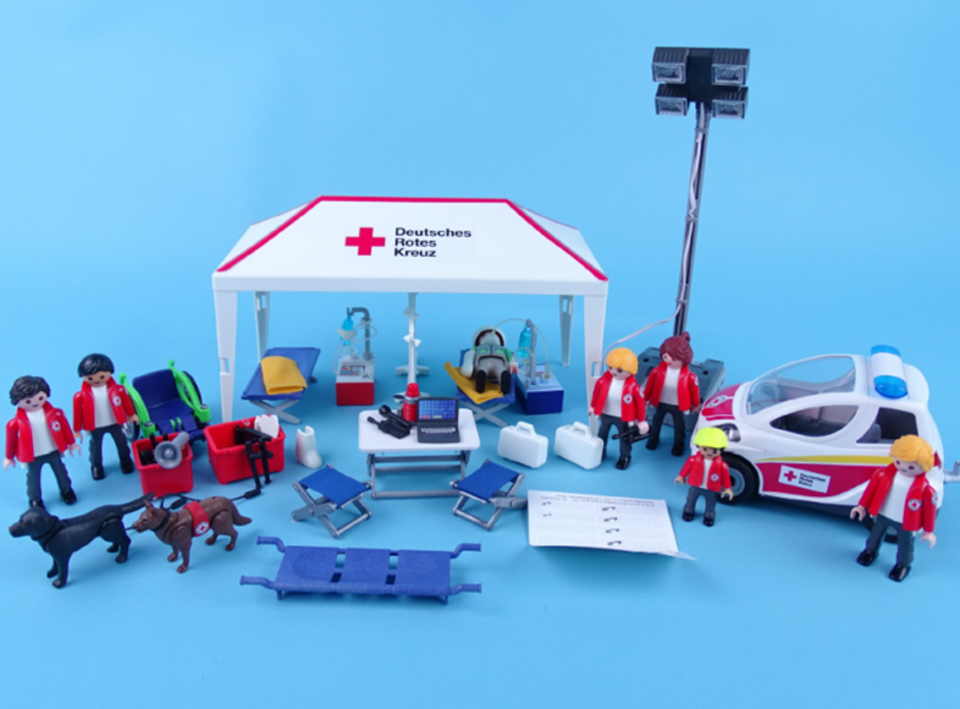 Wer kennt Sie nicht, die Spielfiguren von Playmobil: In diesem Jahr können sich Kinder nun auf eine neue Themenwelt freuen, denn das Rote Kreuz hält Einzug in die Spielkisten. Mit fünf unterschiedlichen Spielsets können Kinder die Arbeit des DRK erleben und spielerisch Hilfsszenen nachstellen. Für die diesjährige Kooperation stellt Playmobil eine limitierte Edition mit dem Rotkreuz-Logo her, die bei Galeria Kaufhof sowie in den PLAYMOBIL-Stores und im PLAYMOBIL FunPark für eine begrenzte Zeit erworben werden kann.