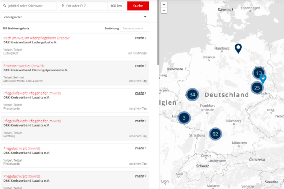 Der DRK-Gesamtverband und alle Gliederungen haben die Möglichkeit, kostenfrei und automatisch ihre Stellenausschreibungen auf Ihrem Karriereportal jobs.drk.de zu veröffentlichen und dadurch eine einfache Eingabe der Bewerbungsdaten zu ermöglichen.