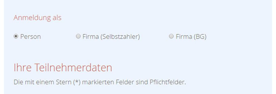 Pflichtfelder Kursanmeldeformular: